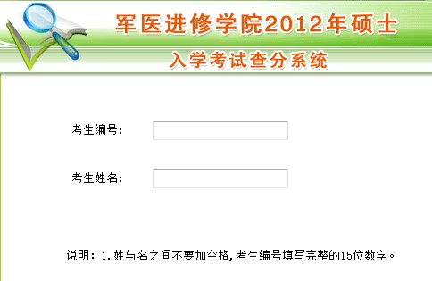 军医进修学院2012年考研成绩查询已开通,详情如下: