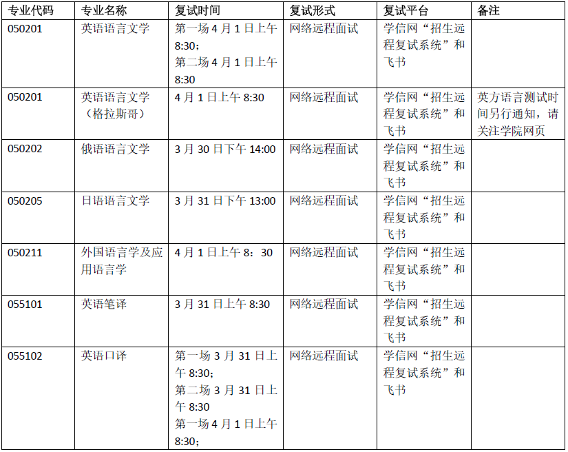 3. 注:英语语言文学(格拉斯哥)中方复试成绩与格拉斯哥大学的语言测试成绩权重占比为6:4,复试加权成绩低于60 分(不含60 分)确定为复试不合格,复试成绩不合格的考生不予录取。