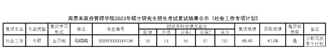 南开大学周恩来政府管理学院2023年硕士研究生招生考试考研复试结束公示(社会工作专项计划)