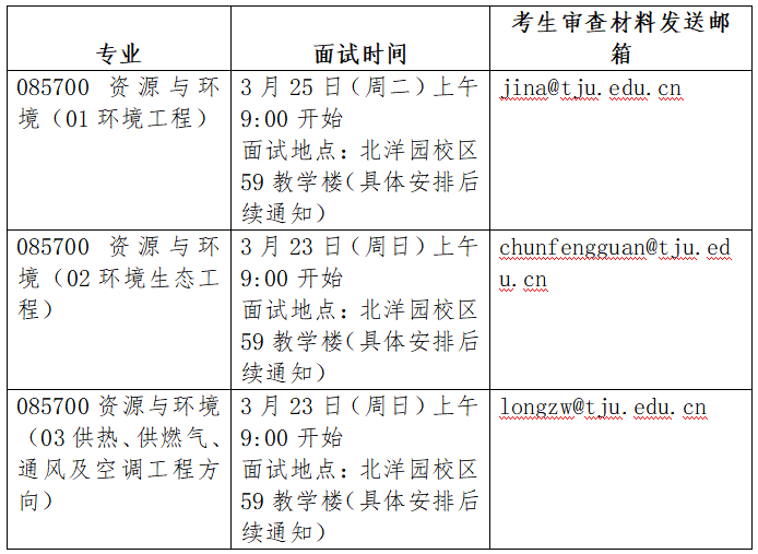 另:报考环境学院的考生可申请参加天津大学科创硕士项目,申请人可在环境学院的专业能力考核和综合素质考核均结束后,参加由宣怀学院组织的科创综合面试。项目介绍及申请方式等详见附件《关于开展2025年科创硕士研究生统招复试工作的通知》