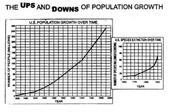 From these graphs, we can draw a conclusion that, with the growth of human population, the number of species has decreased rapidly in America, and some species have even vanished from our planet.