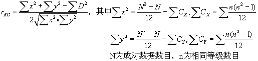 直接用等级序数计算: ,其中 R X 、 R Y 分别为二变量各等级数