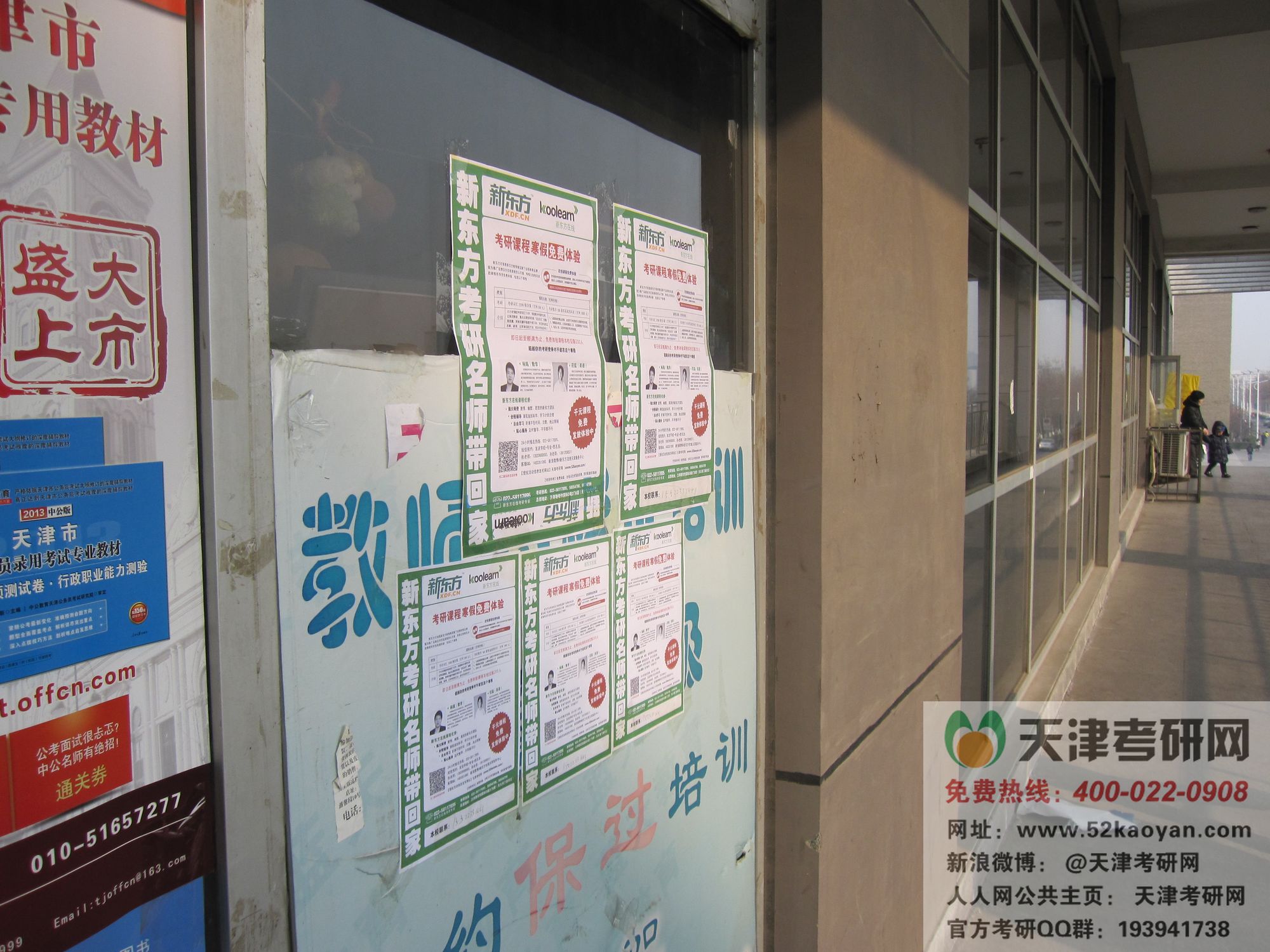 由新东方在线和天津考研网联合在天津市举办的《这个寒假,新东方名师免费带回家》活动,已经在天津各高校火爆开展。 为了让同学们更清楚的了解新东方网络课程,新东方在线特联合天津考研网,在天津地区,进行英语、数学考研课程的免费发放。 只要你是天津地区的2014年考研学生,都可以到天津考研网总部或联系老师到所在院校开课。 天津工大第一食堂已经张贴了活动海报,想要购买天津考研网专业课资料或参加体验活动的,都可进行咨询查看。