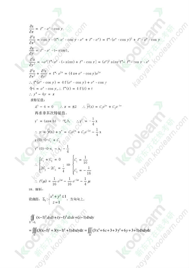 2014年全国硕士研究生入学统一考试数学一真题答案(图片)