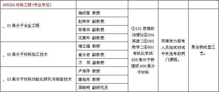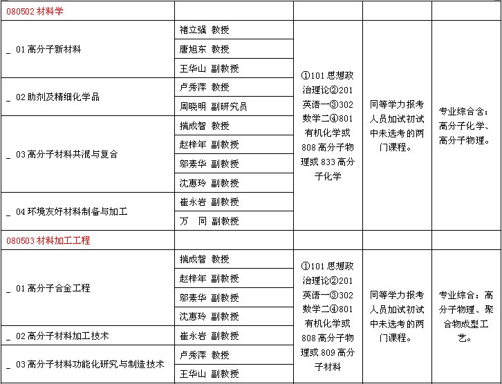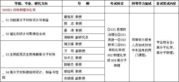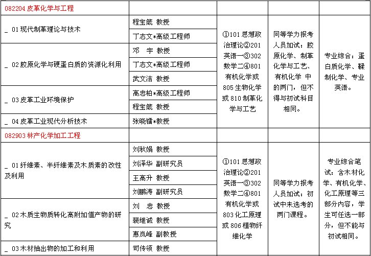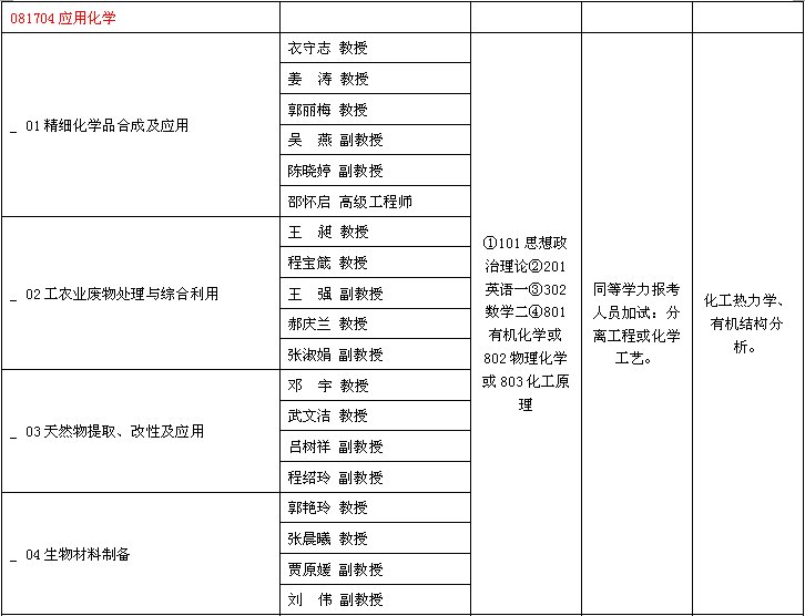 天津科技大学2014年硕士研究生招生专业目录-003材料科学与化学工程学院