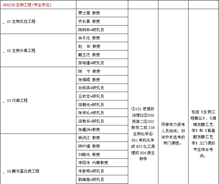 天津科技大学2014年硕士研究生招生专业目录-004生物工程学院