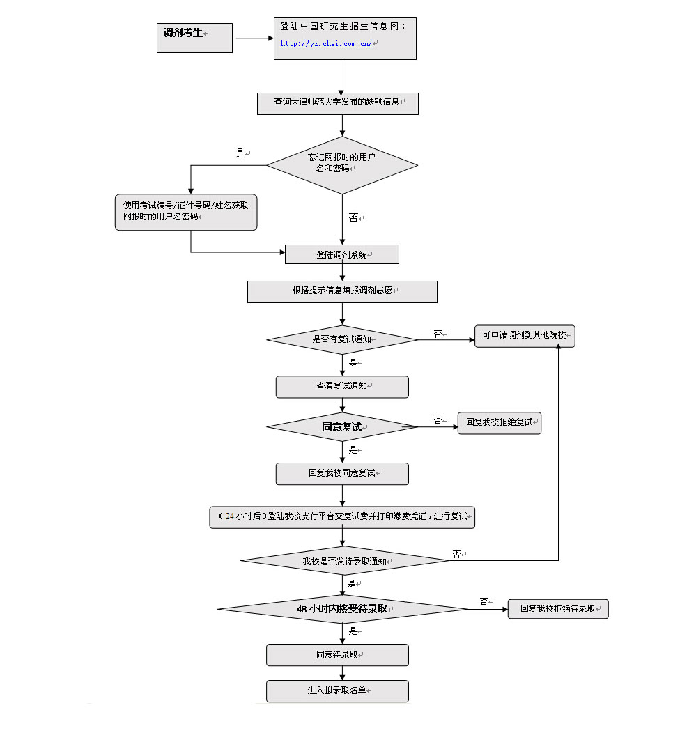 天津师范大学2015年硕士研究生调剂考生复试录取流程图