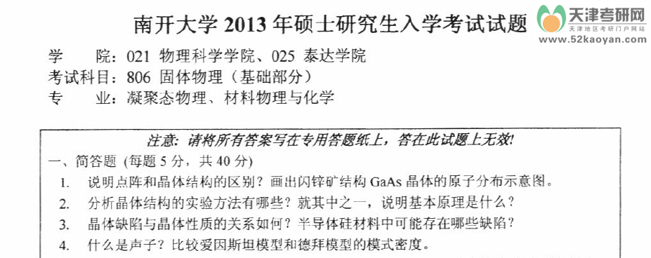 在这些南开大学凝聚态物理专业考研教材复习一两遍以后,就可以开始认真分析历年真题了,在做真题的时候一定要将自己的答案和参考答案进行比较,得出之间的差别,然后对参考答案的答题角度进行分析,最终总结出自己的解答方法。这些好的习惯是你考研复习必须具备的。