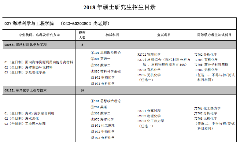 河北工业大学海洋科学与工程学院2018年考研招生专业目录已公布,报考一个学校首先要搜集到的信息属专业目录与招生简章莫属,明确了目标,才会找准方向,扬帆远航!天津考研网为方便同学们备考特意整理好发布,详情如下: