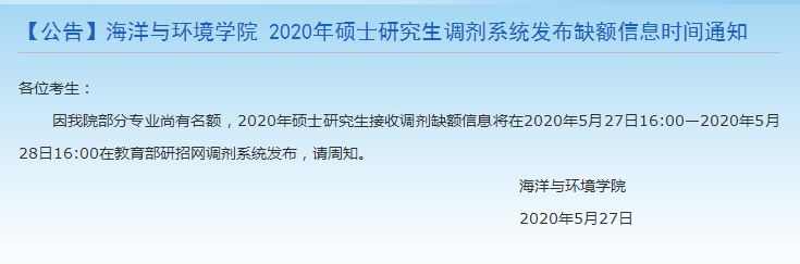 天津科技大学海洋与环境学院2020考研调剂方法(缺额信息发布三)
