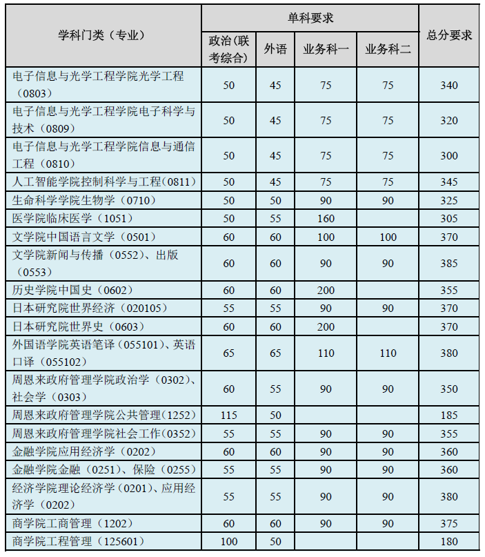 南开大学2021年考研学院上调复试分数线汇总