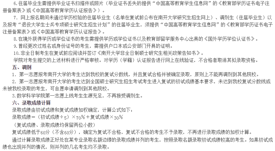 南开大学数学科学学院2021年考研复试办法