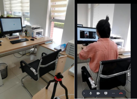 正面:调整电脑角度和座椅位置,保证双手在屏幕内。可在开始面试前和家人、朋友提前演示,固定最佳位置。