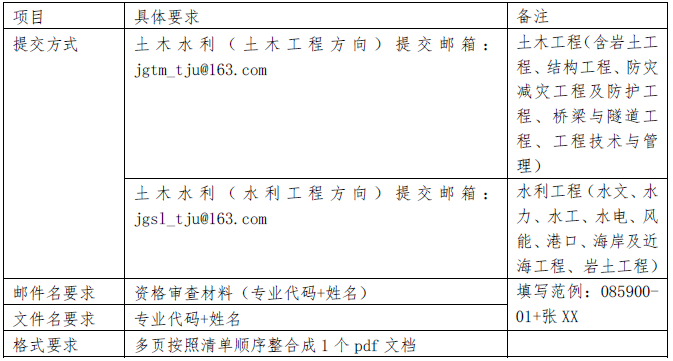 2. 原则上考生考试科目及内容与天津大学建筑工程学院土木水利(085900)专业相同者优先。
