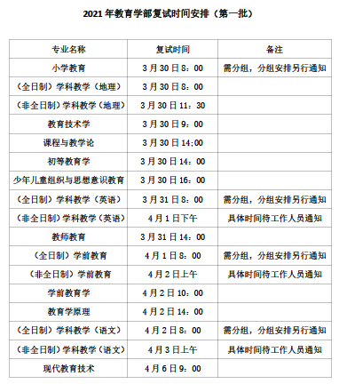 天津师范大学教育学部小学教育2021年考研复试分组安排