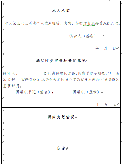 15.备注:有需要特别说明的情况(如“入团志愿书、团员证等档案材料丢失”),在“备注”栏填写,同时写明时间、加盖公章。