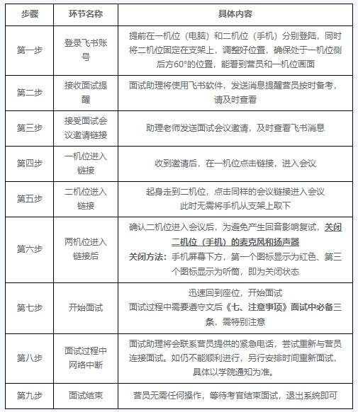 2. 面试过程中,请营员严格按照面试组长和助理的要求进行面试。推免面试是国家研究生招生考试的一部分,面试内容属于国家机密级。面试过程中禁止营员录音、录像和录屏,禁止将相关信息泄露或公布,若有违反将按考试违规违纪予以处理。