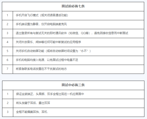 1. 宽敞、安静、明亮,确保网络优质且连接顺畅,可以保证双机位面试。