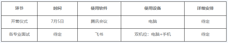本次夏令营暂定7月5日开营,所有环节均采用线上的形式,开营前的所有安排将第一时间公布在学院官网,请随时关注。