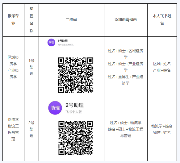 (1)请考生使用本人手机号注册飞书账号,根据自己报考的专业,扫描下方二维码,添加相应的面试助理。