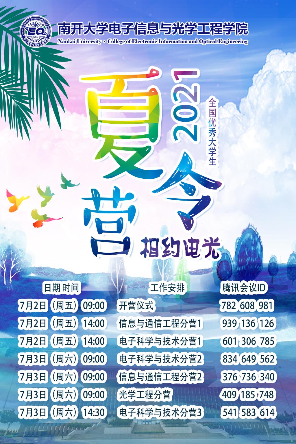 南开大学“2021相约电光”夏令营活动安排