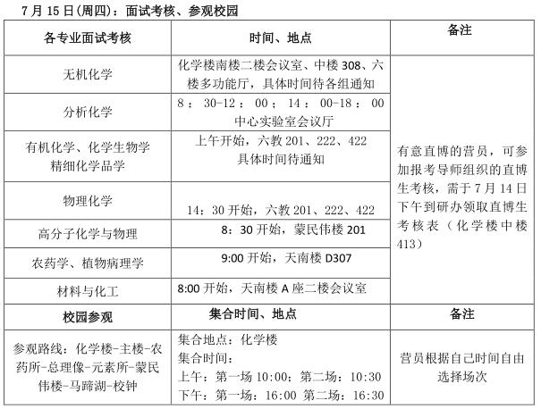 南开大学2021年魅力化学优秀大学生夏令营日程安排