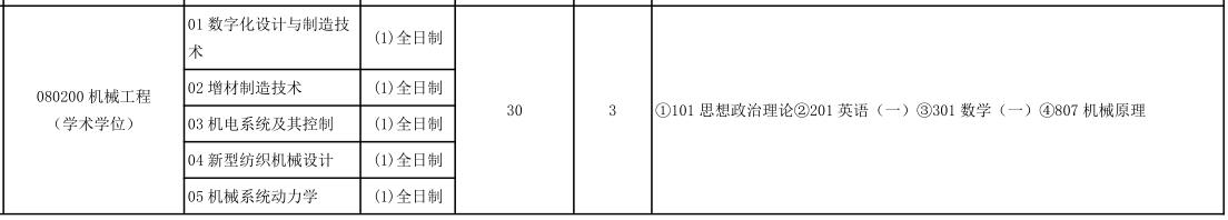 天津工业大学080200 机械工程2022年考研专业目录/硕士研究生招生专业目录