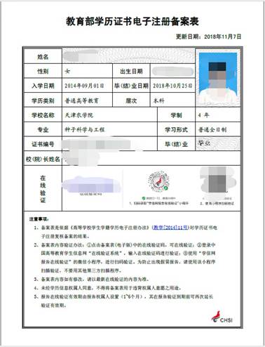 4. 坐落在天津的高校2022届应届本科毕业生(含普通全日制、成人高校、普通高校举办的成人高等学历教育应届本科毕业生),须提供“中国高等教育学生信息网”的《教育部学籍在线验证报告》(参见下方图例所示)。