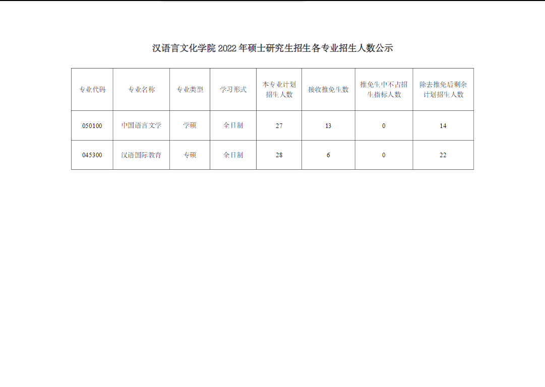 南开大学汉语言文化学院2022年考研复试招生人数