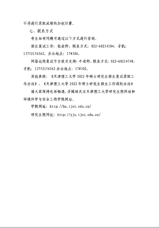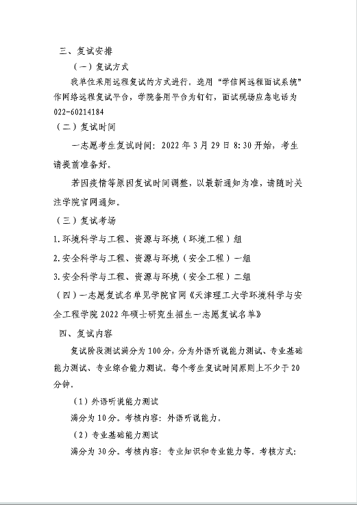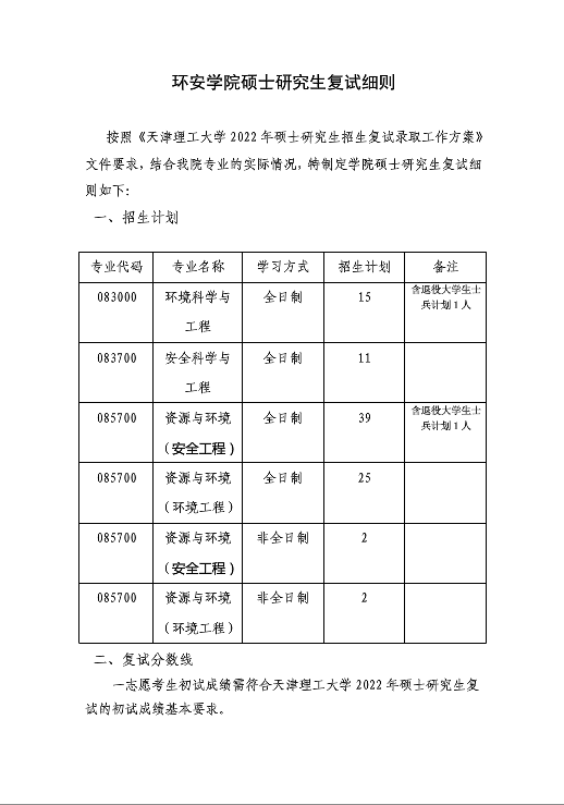 天津理工大学环境科学与安全工程学院2022年硕士研究生考研复试办法
