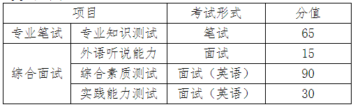 复试成绩总分200,其中专业能力考核80分,综合素质考核120分。专业能力考核成绩包括外语听说能力测试15分、专业知识测试65分;综合素质考核成绩包括实践能力测试30分、综合素质测试90分。