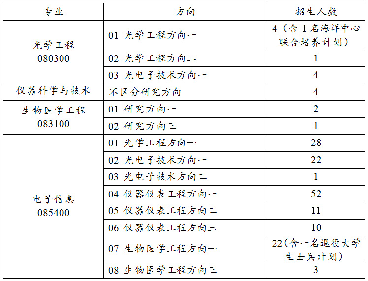 (2)复试时间: 光电子技术方向(包含学术型及电子信息下该方向)在3月25日;其他各招生专业均在3月24日。