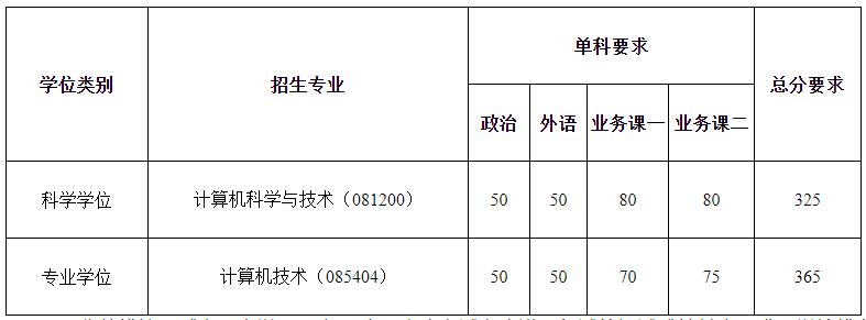 南开大学计算机学院2023年硕士研究生考试考生进入复试的初试成绩基本要求