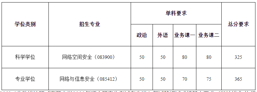 南开大学网络空间安全学院2023年硕士研究生考试考生进入复试的初试成绩基本要求