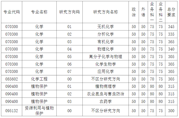 南开大学化学学院2023年硕士研究生考试考生进入复试的初试成绩基本要求