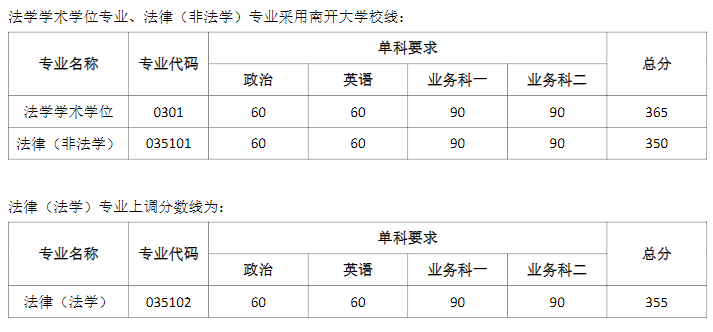 南开大学法学院2023年硕士研究生招生考试考生进入复试的初试成绩基本要求