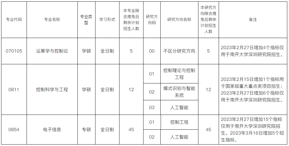 南开大学人工智能学院2023年硕士研究生招生各专业考研招生人数公示