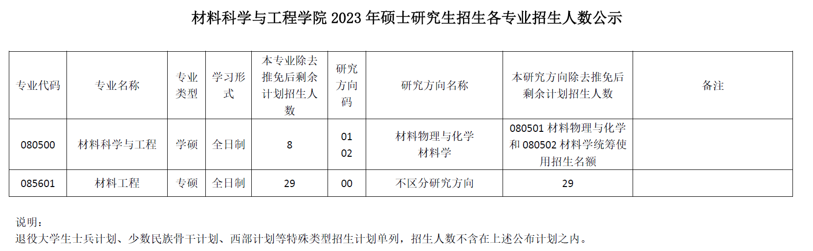 南开大学材料科学与工程学院2023年硕士研究生各专业考研招生人数公示