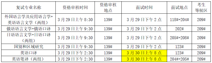 请考生随时关注南开大学研究生招生办网站和外国语学院网站的有关信息!考生资格审核、交费、复试时间及地点(以下地点均为外国语学院):
