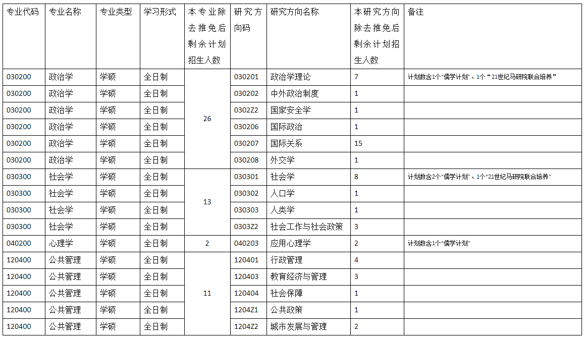 南开大学周恩来政府管理学院2023年硕士研究生招生各专业考研招生人数公示(学术学位)
