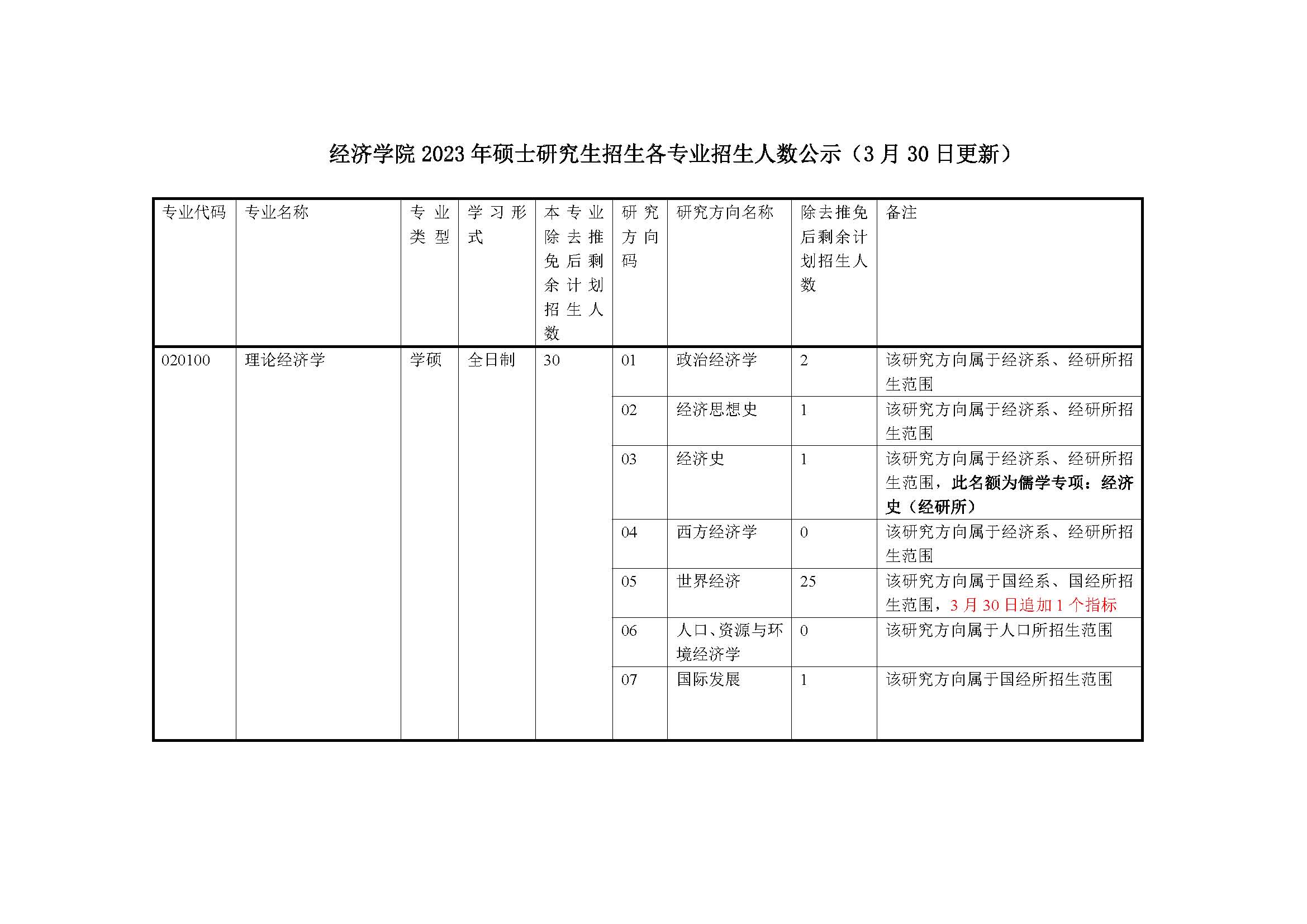 南开大学经济学院2023年硕士研究生各专业考研招生人数公示(3月30日更新)