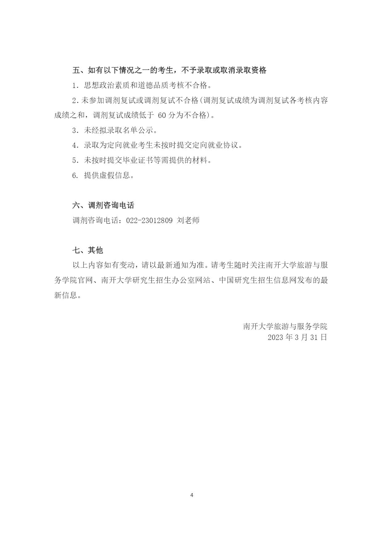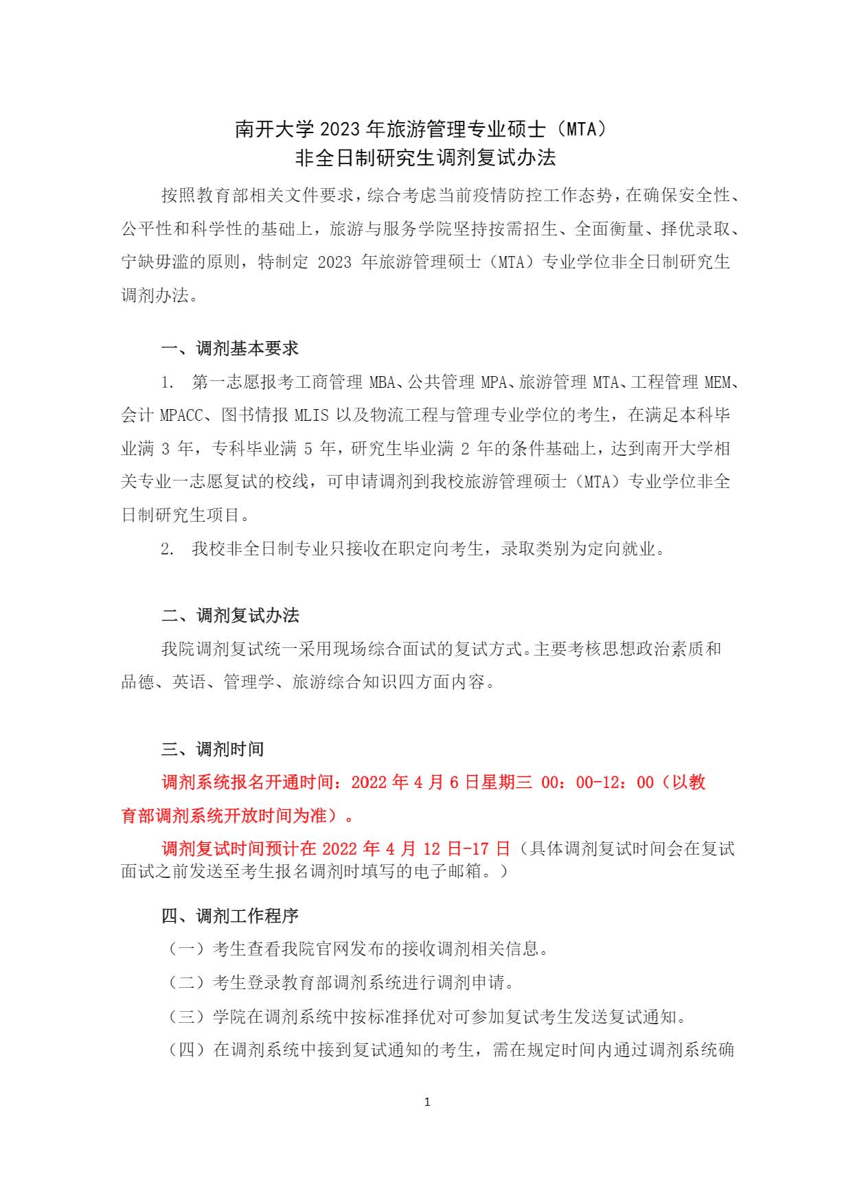 南开大学旅游与服务学院2023年旅游管理专业硕士(MTA)非全日制研究生调剂考研复试办法