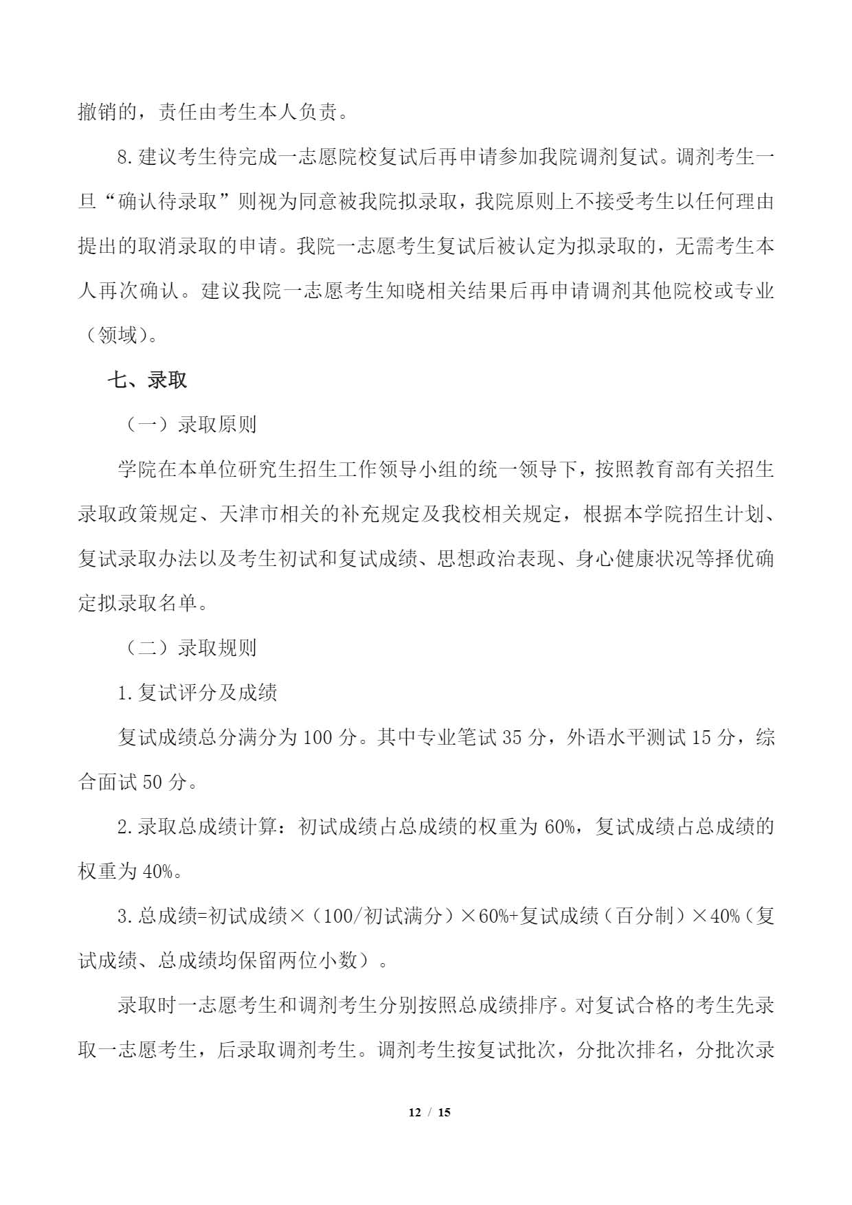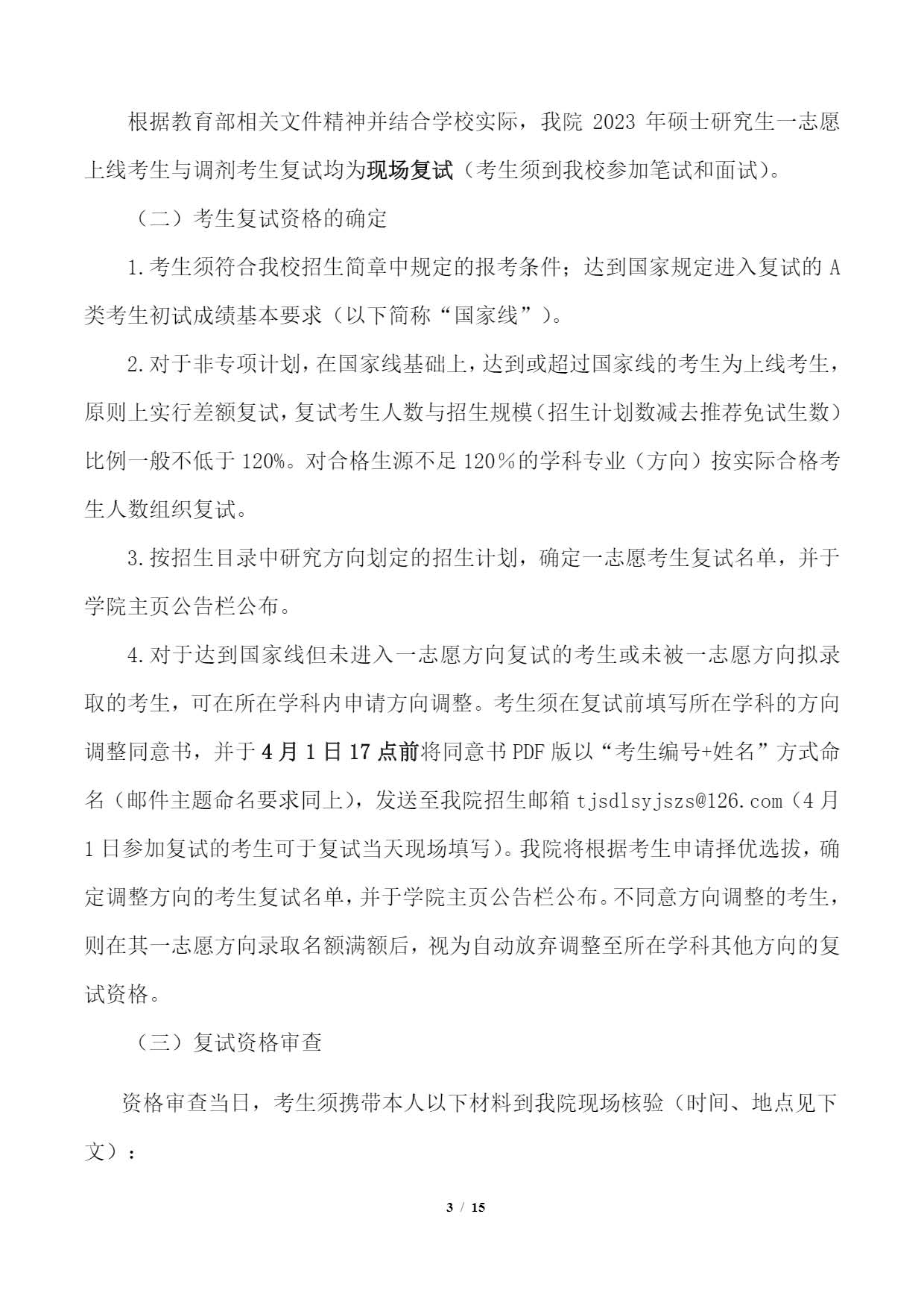 天津师范大学数学科学学院2023年硕士研究生招生考研复试录取工作细则