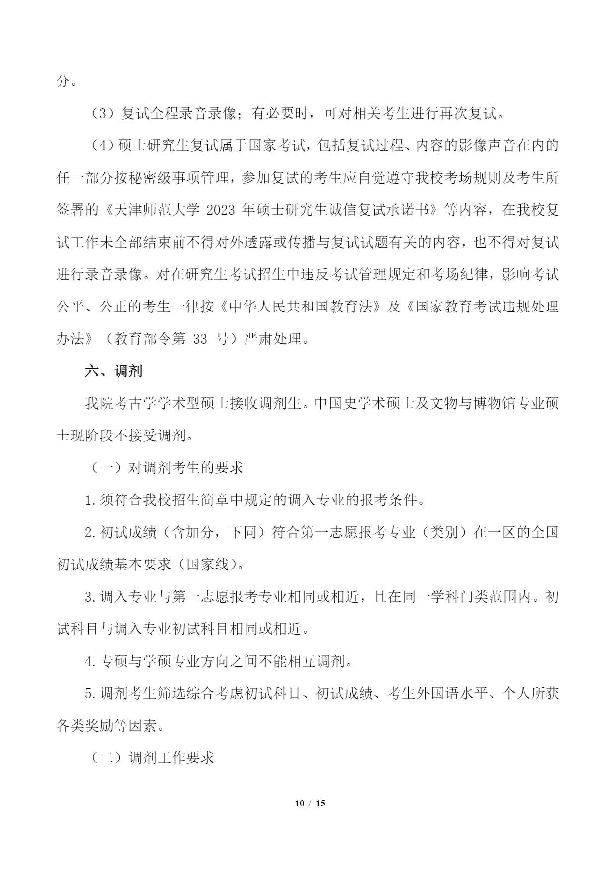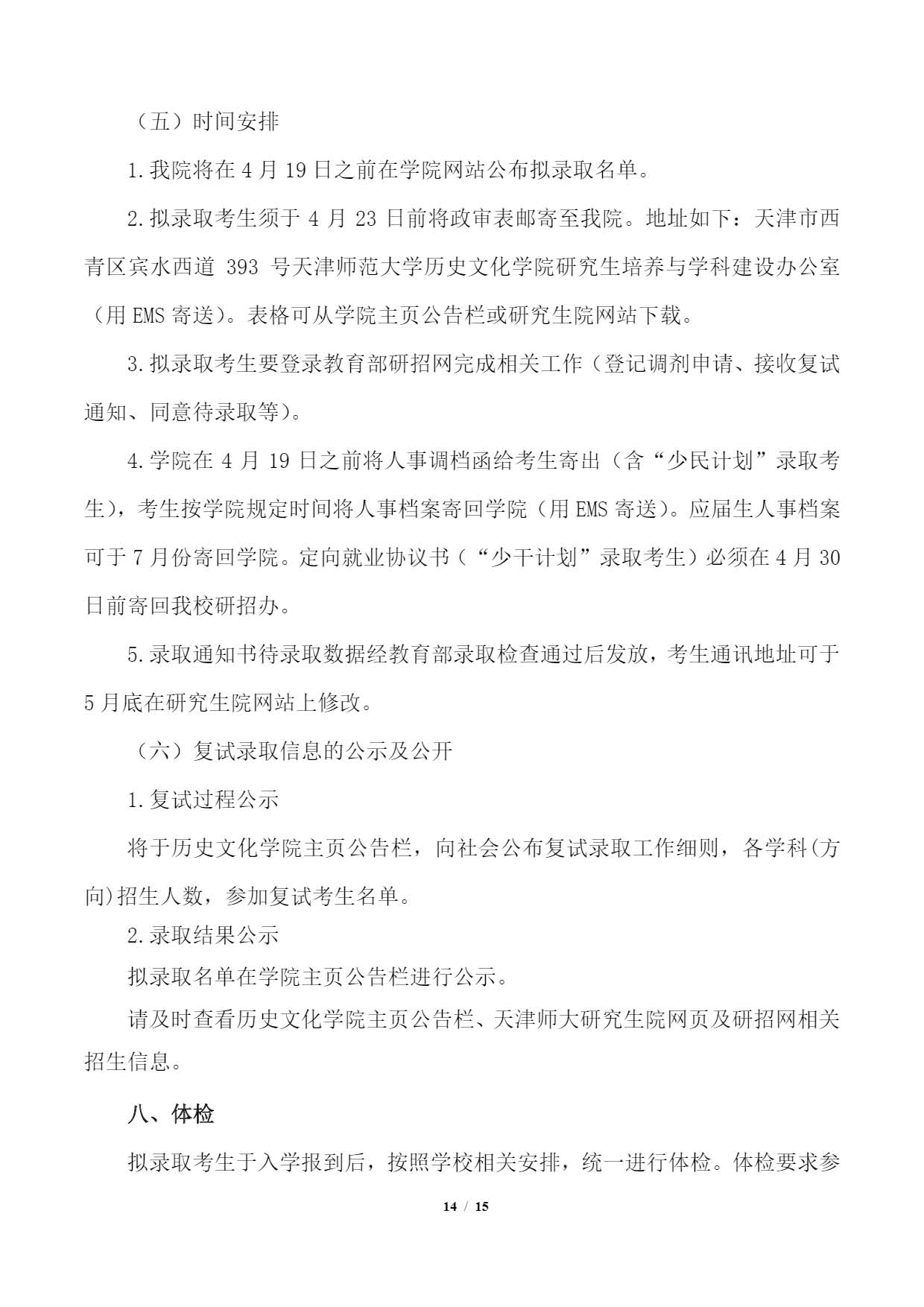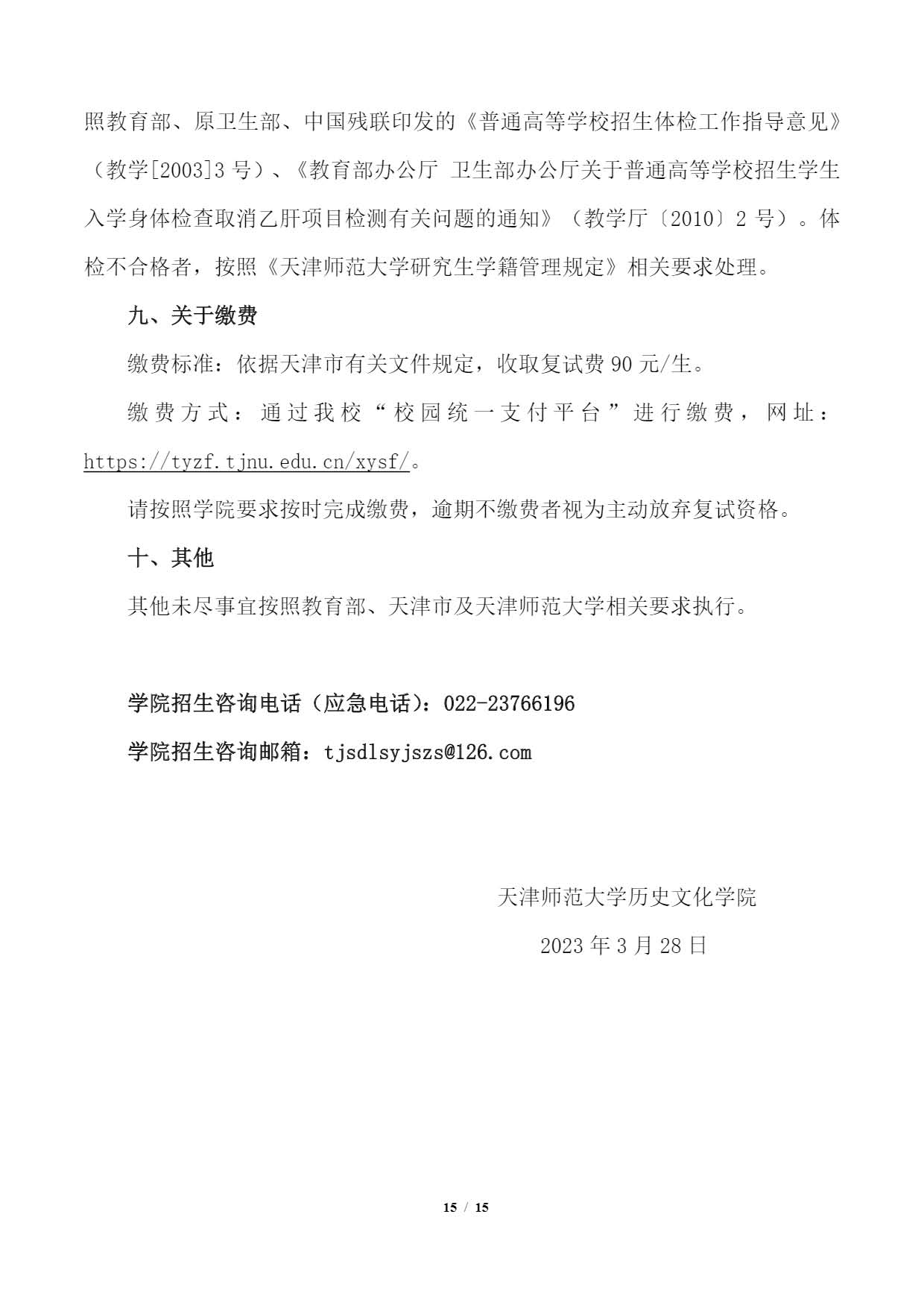 天津师范大学历史文化学院2023年硕士研究生考研复试、录取工作细则