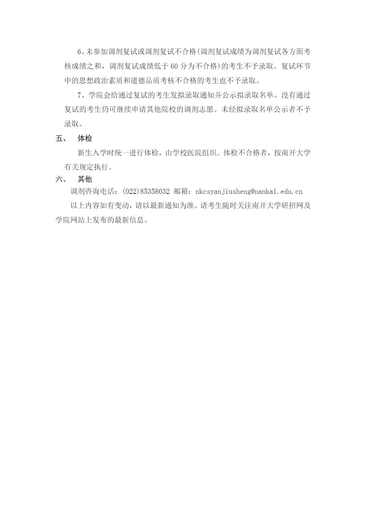 南开大学医学院2023年生理学、基础医学考研调剂复试细则