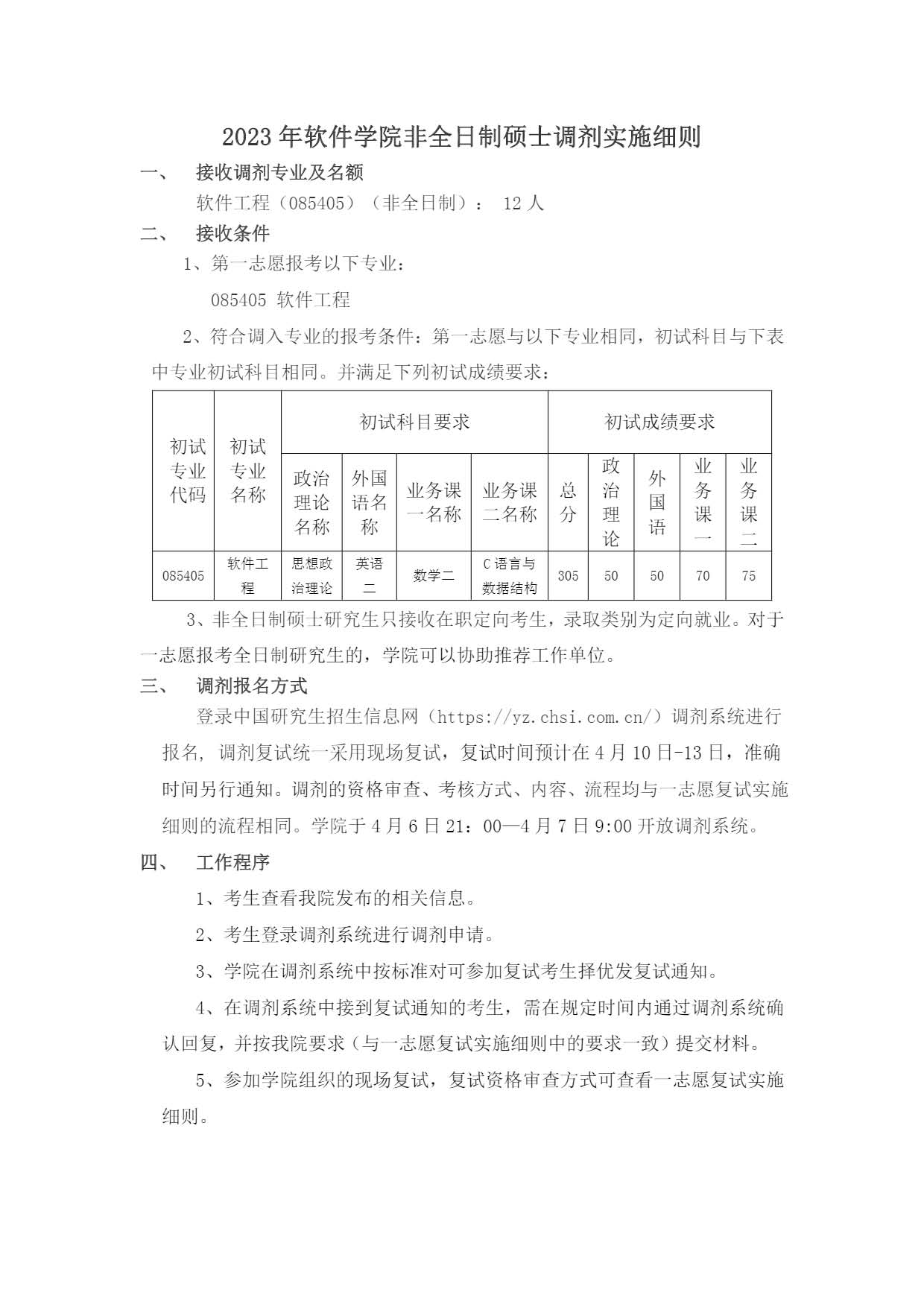 南开大学软件学院2023年非全日制硕士考研调剂实施细则
