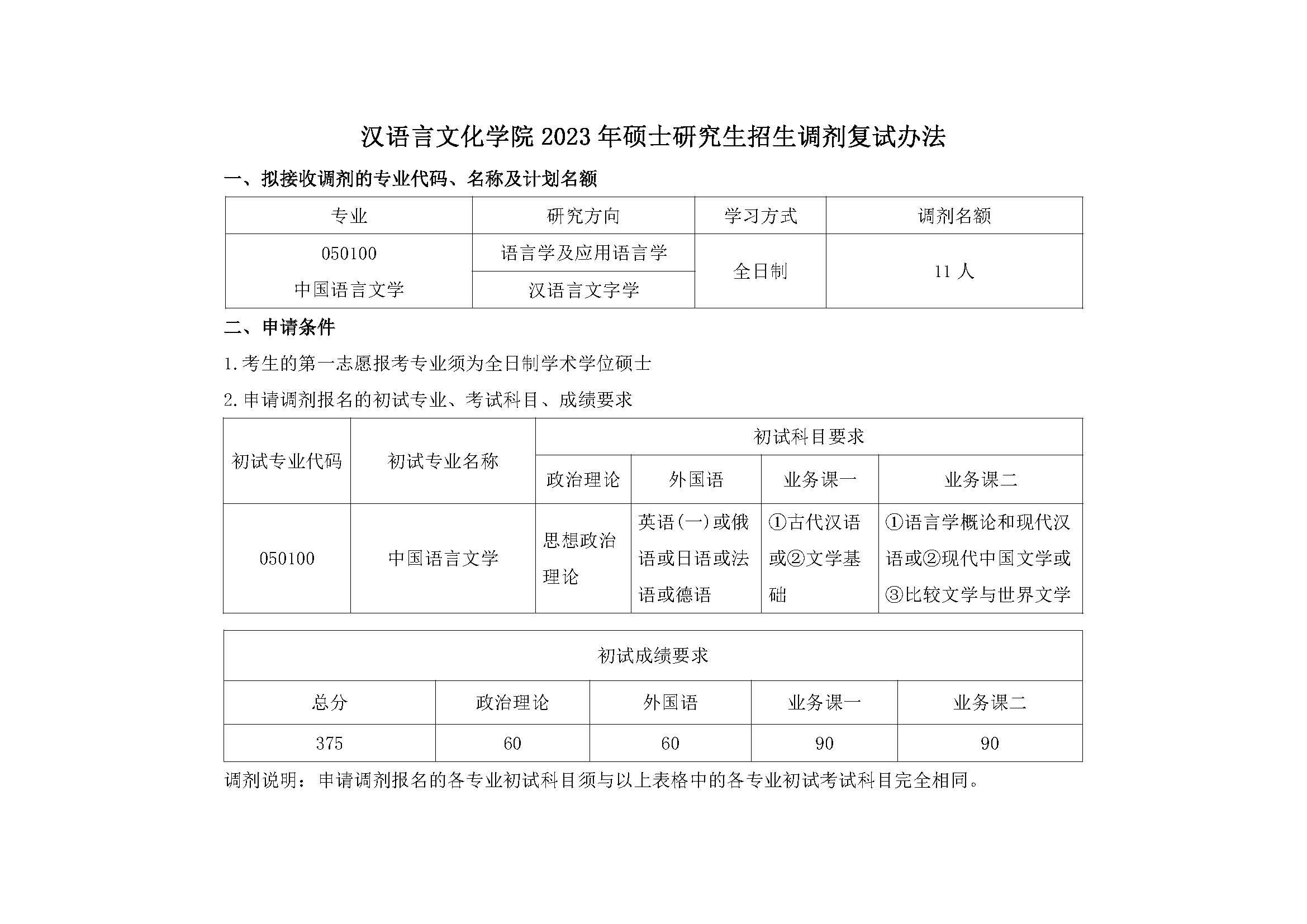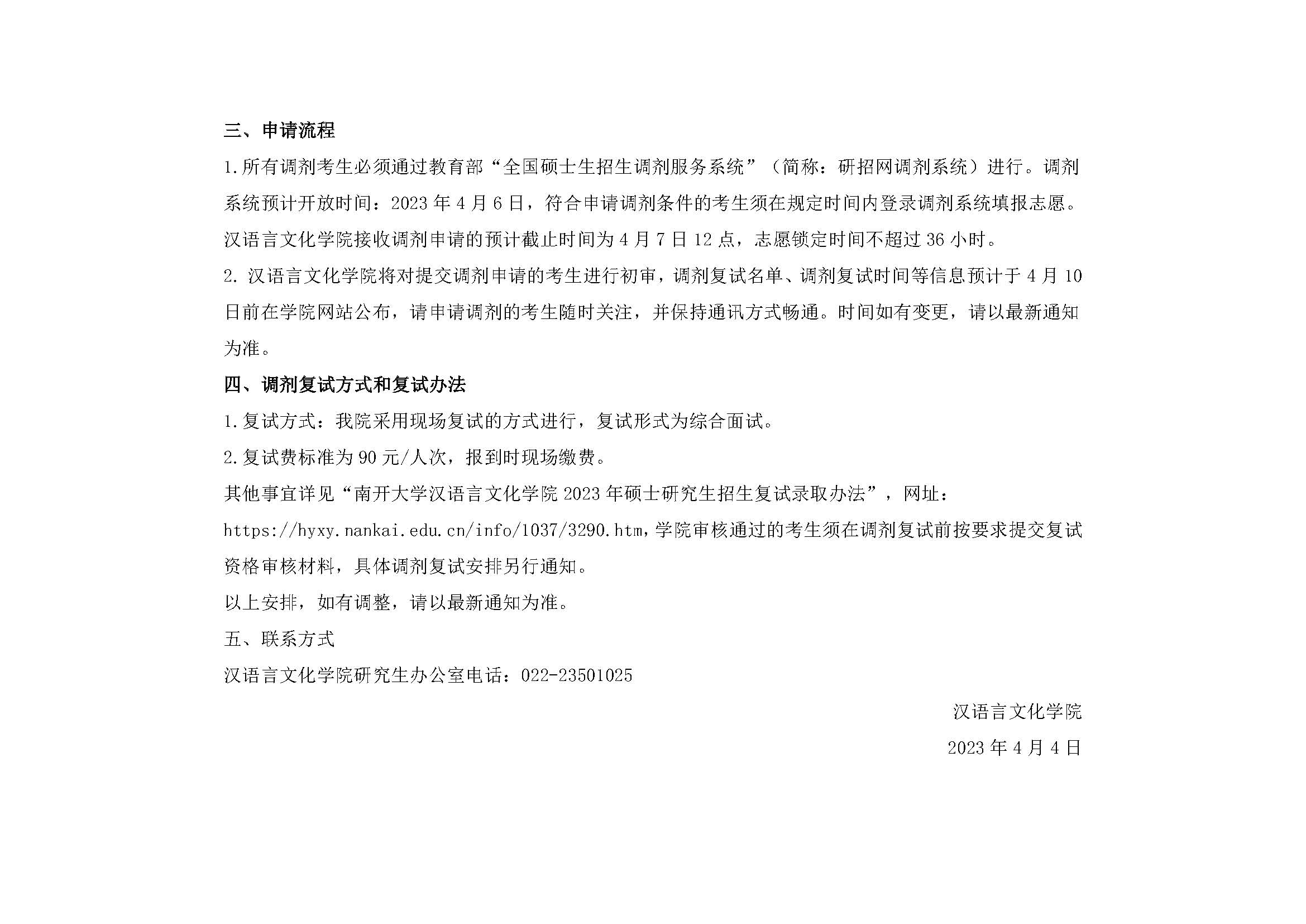 南开大学汉语言文化学院2023年硕士研究生招生考研调剂复试办法