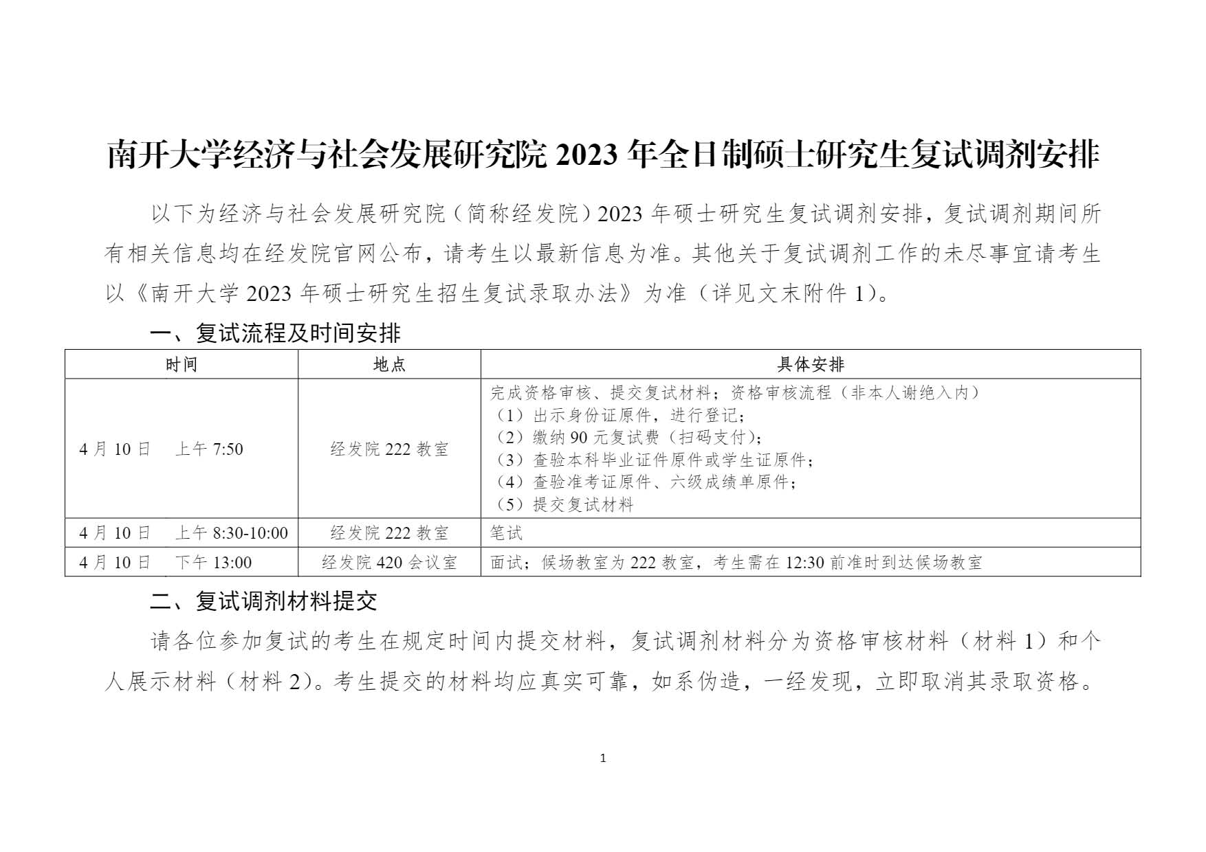 南开大学经济与社会发展研究院2023年考研复试调剂安排