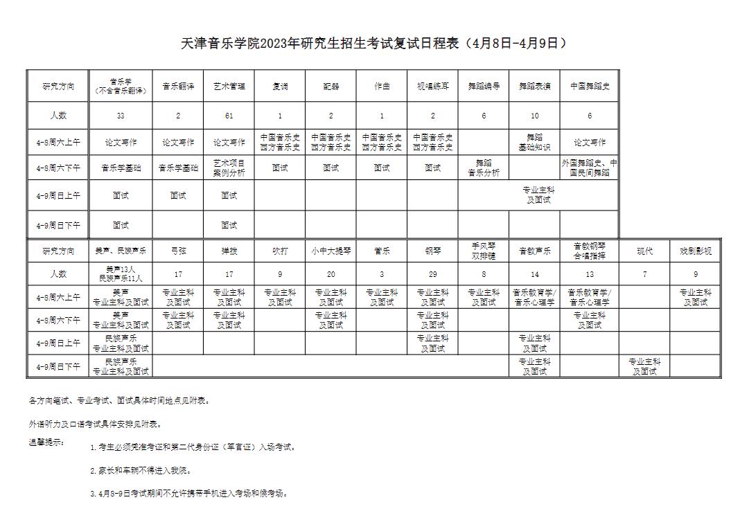 天津音乐学院2023年硕士研究生复试具体安排