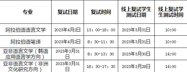 1.复试方式:我院采用现场复试与网络远程复试结合的方式进行。亚非语言文学、阿拉伯语语言文学、阿拉伯语笔译方向采取网络远程复试,朝鲜语口译、朝鲜语笔译方向采取现场复试的方式。
